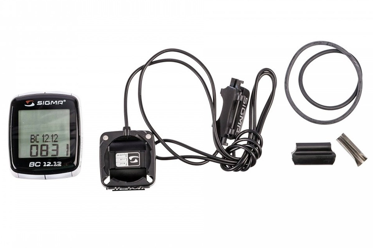 Проводной велокомпьютер Sigma BC 12.12, кроме основных характеристик поездки – время, скорость, пройденный путь, фиксирует максимальную скорость поездки и рассчитывает среднюю скорость.