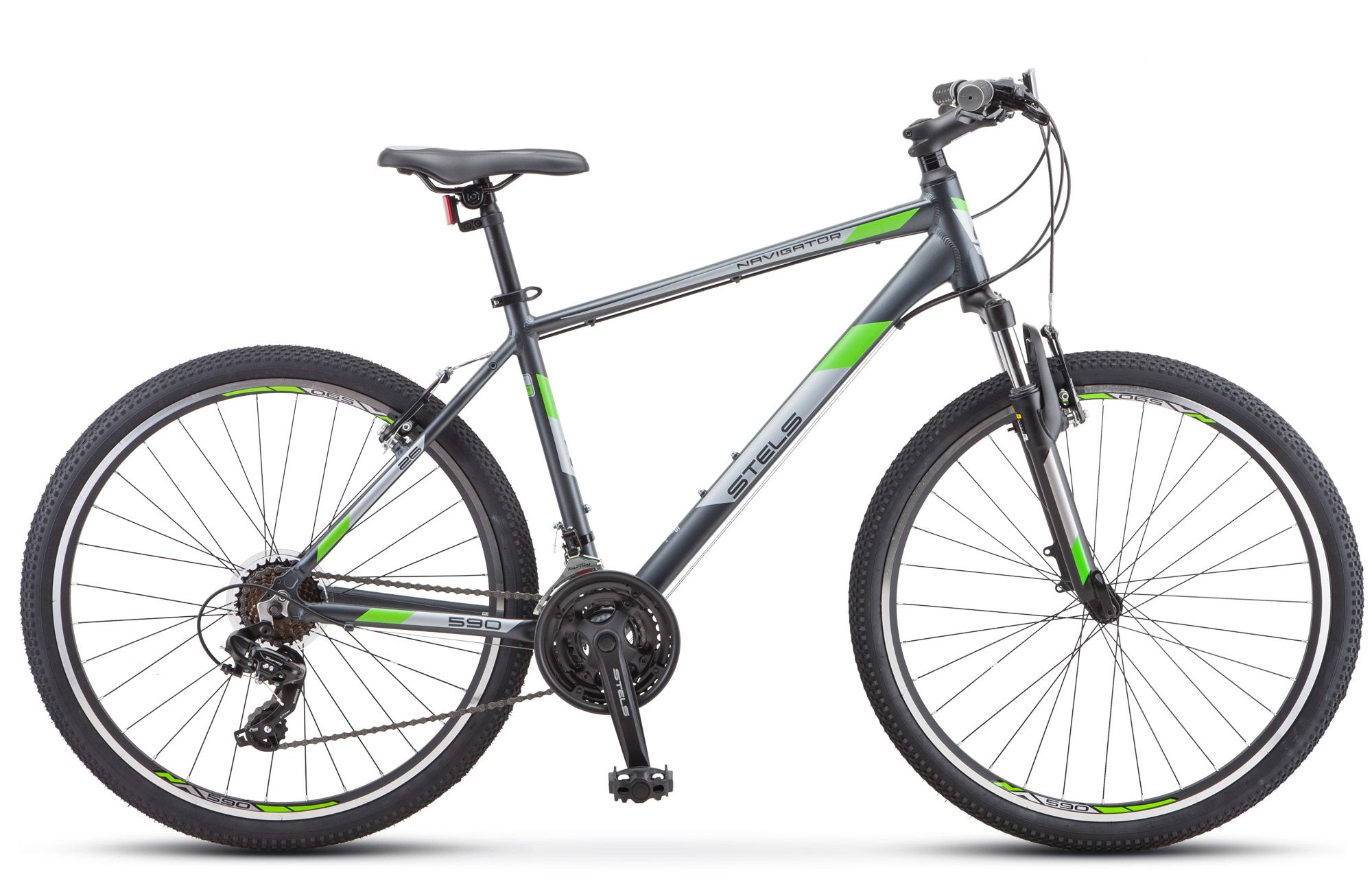 Велосипед Stels Navigator 590 V 26 K010 — маневренная модель с ярким дизайном, надежная, отзывчивая, с прекрасными скоростными характеристиками. Отлично показала себя на разных типах покрытий, поэтому подойдёт и для поездок по городу, и для вылазок на природу. Горный велосипед Без года года, имеющий колеса 26 (стандарт), легко управляется, и для разгона ему не требуется много времени. Ободные (V-brake) тормоза гарантируют высокую степень безопасности и успешное совершение любых маневров даже на сложных участках пути. Колеса диаметром 26" дюймов и прочная рама позволяют байку выглядеть внушительно и солидно.