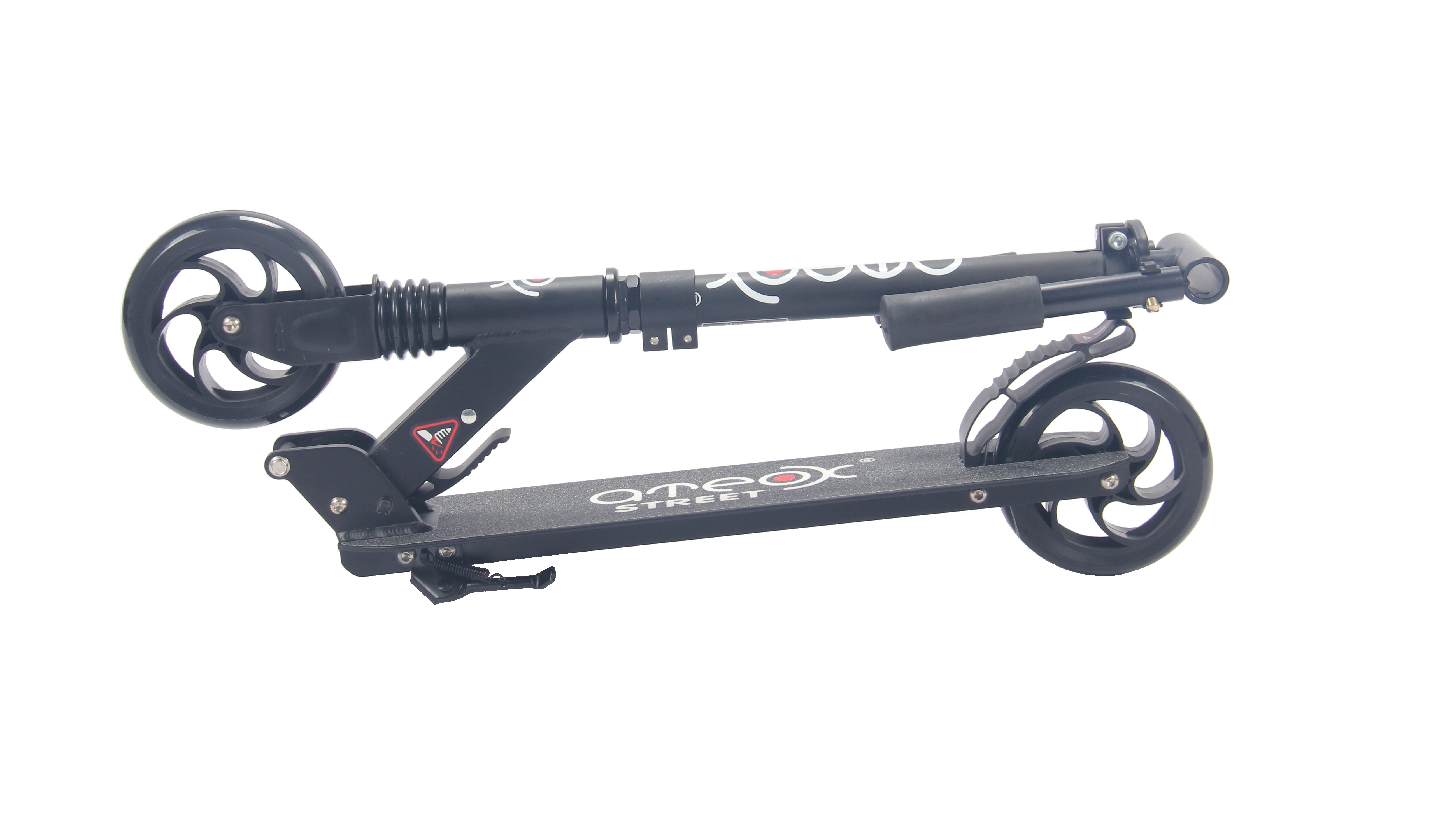 Бренд ATEOX Модель Street С ПЕРЕДНИМ АМОРТИЗАТОРОМ ЧЕРНЫЙ Амортизатор передний Высота руля от 73 см до 87 см (три положения) Диаметр колес 145 мм Грипсы резина Максимальная нагрузка 100 кг Тормоз наступающий (Step-on brake) Пол/возраст от 6 лет Ширина руля 40 см Вес 3,6 кг Подшипник АВЕС7 Гарантийный срок 12 месяцев Подножка есть Ремень для переноски есть Расстояние от земли до поверхности деки 8,5 см Дека алюминиевая, 50х11 см Система складывания есть Колёса полиуретановые, жесткостью 88А -